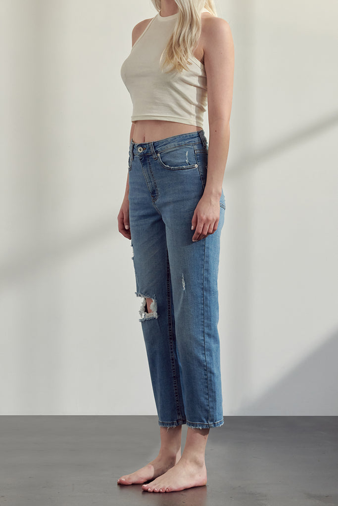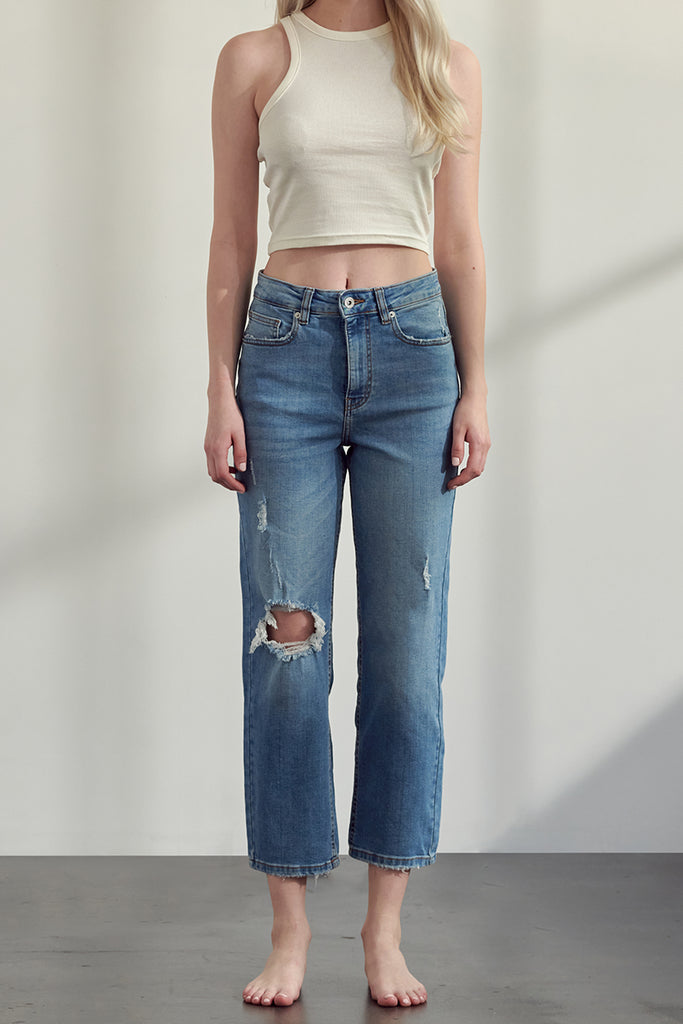 HIGH RISE SLIM STRAIGHT FIT JEANS