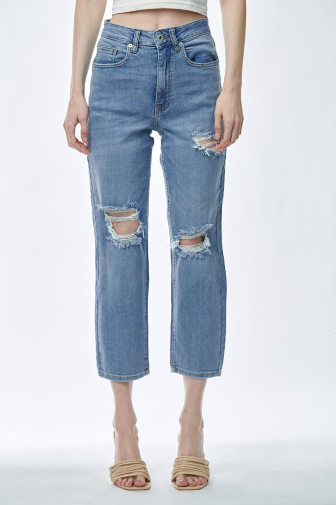 HIGH RISE SLIM STRAIGHT FIT JEANS