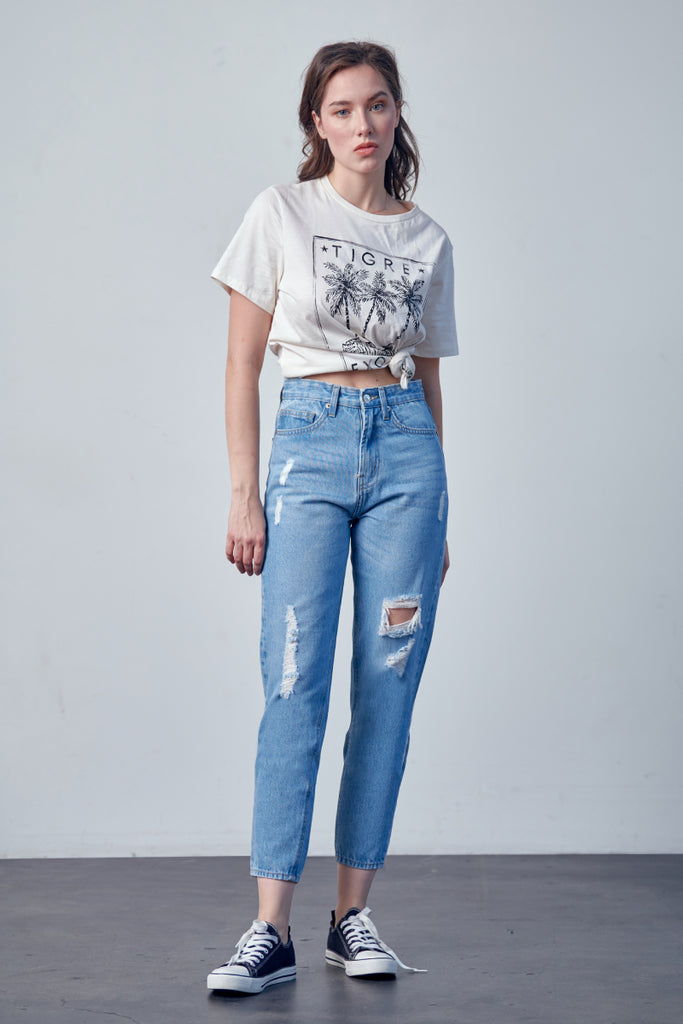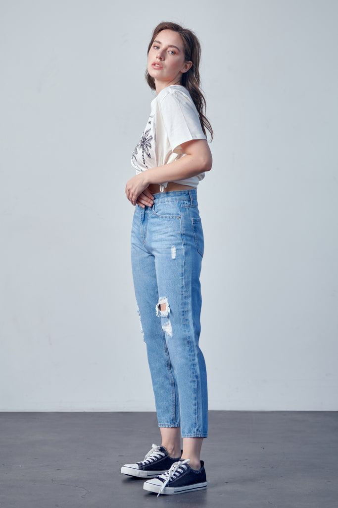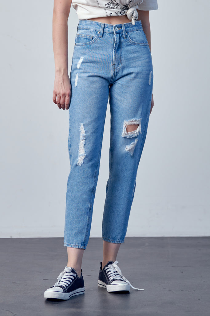 DISTRESSED MOM JEANS