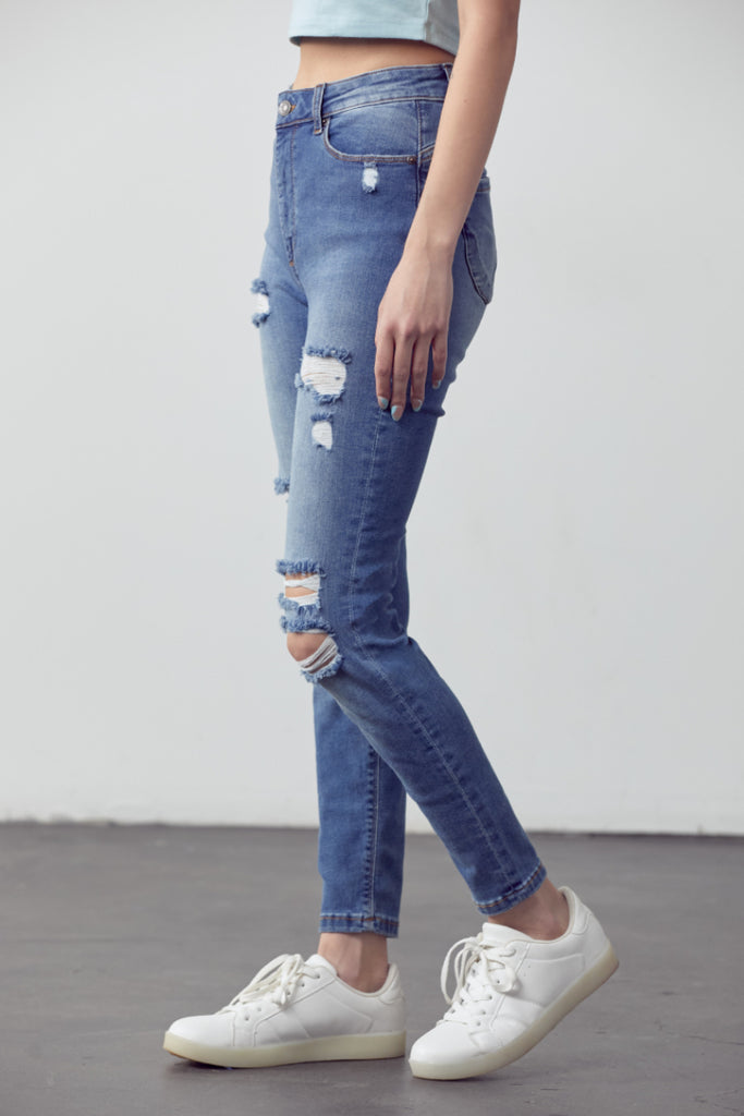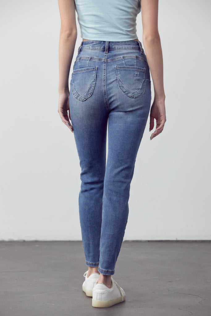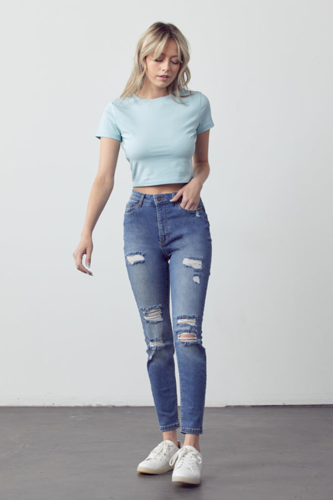 Simple skinny jeans with 10" front rise length. Ultra-soft and stretchy denim fabric that provides a comfortable fit for all sizes.