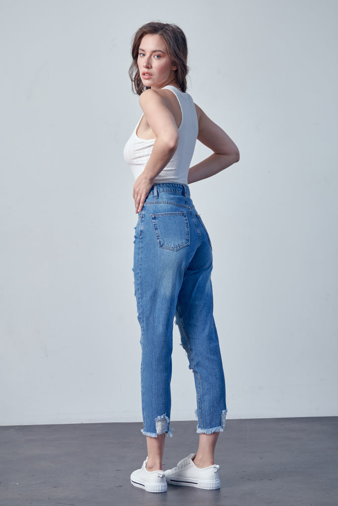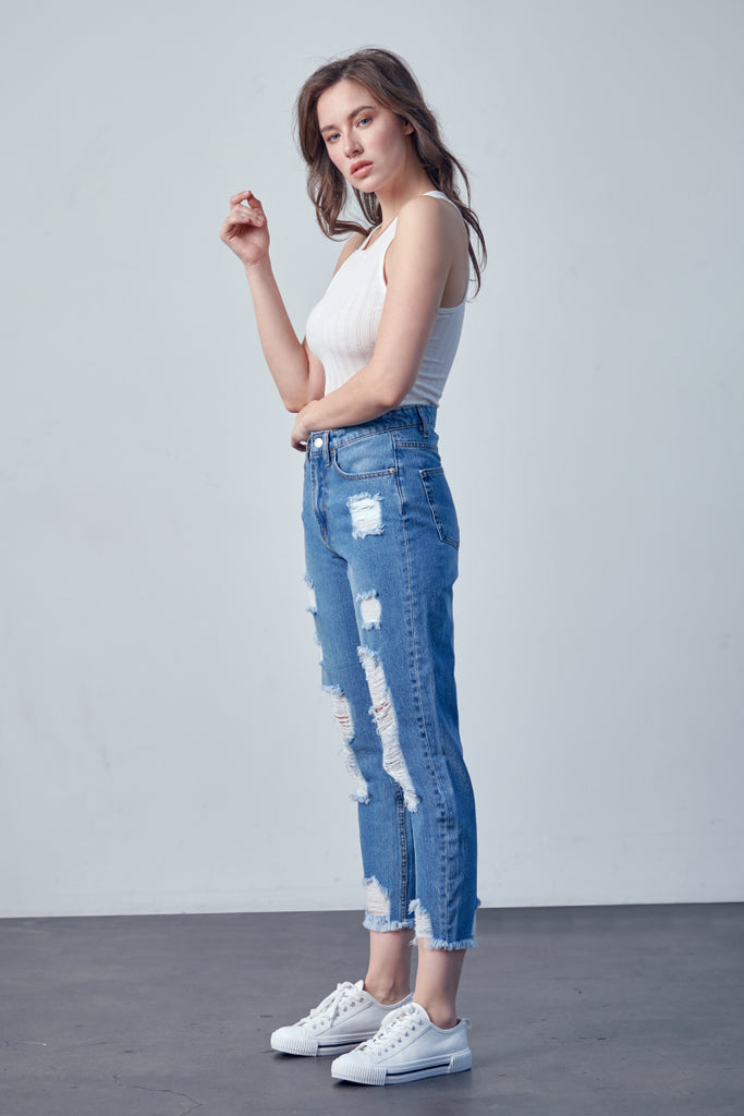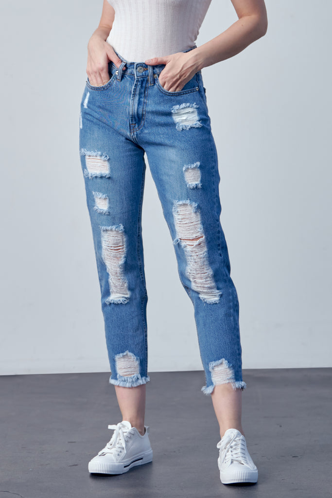 DISTRESSED MOM JEANS