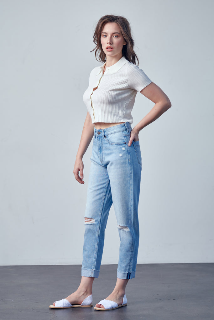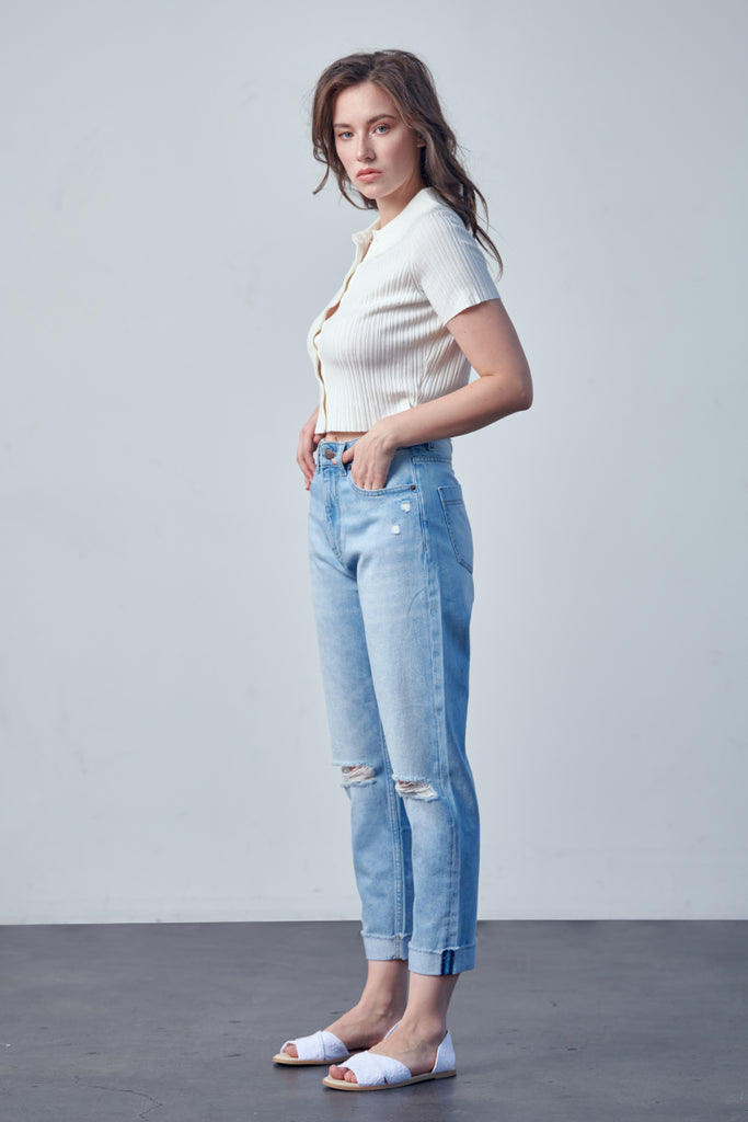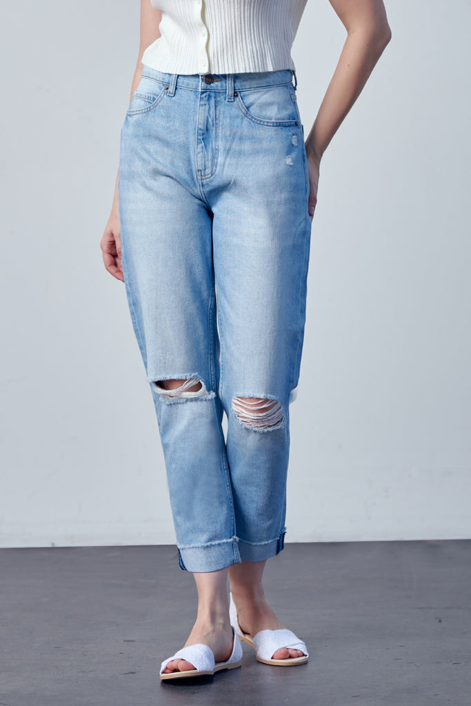 HIGH RISE DISTRESSED BOYFRIEND JEANS