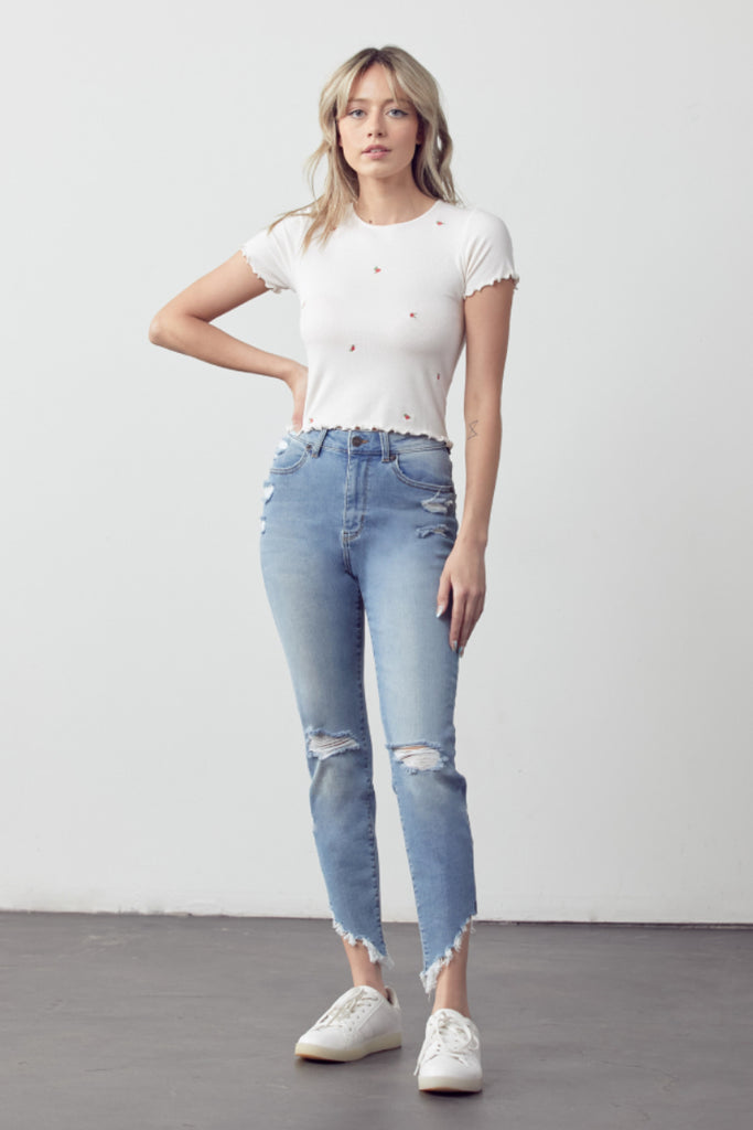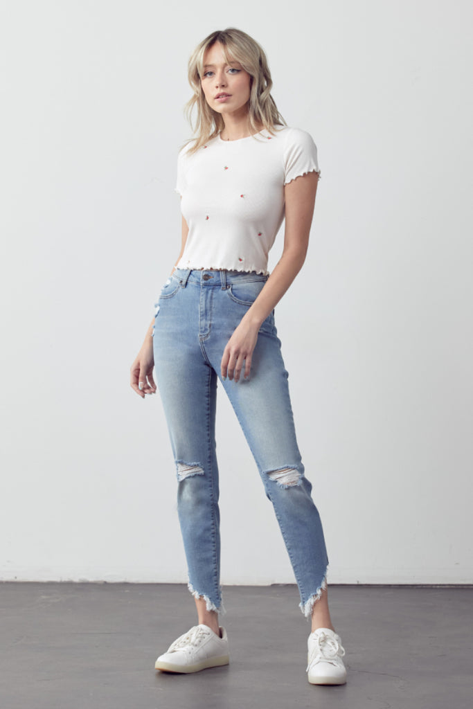 Simple skinny jeans with 10" front rise length. Ultra-soft and stretchy denim fabric that provides a comfortable fit for all sizes.